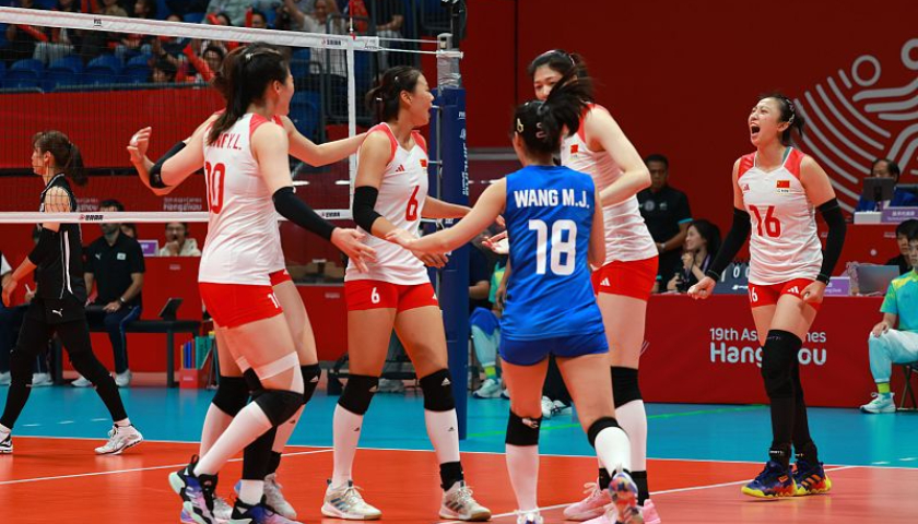 北京时间10月4日,在杭州亚运会排球女子交叉淘汰赛E组的比赛中,中国队3-0轻取韩国队,三局比分为25-12、25-21、25-16。