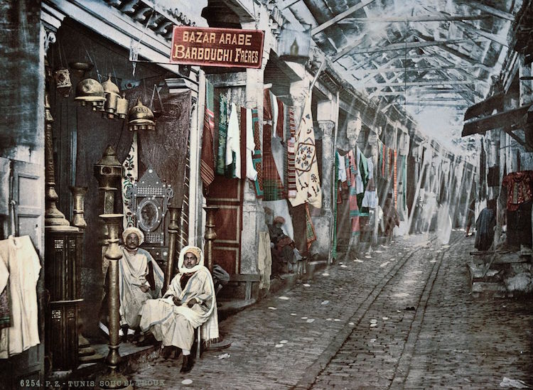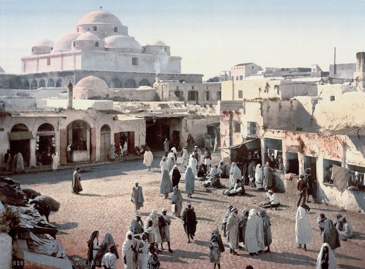 这些华丽的彩色明信片印于1899年,记录了那个时期突尼斯人的日常生活场景,明信片中展示了充满生气的街道和壮观的建筑,以及突尼斯人。