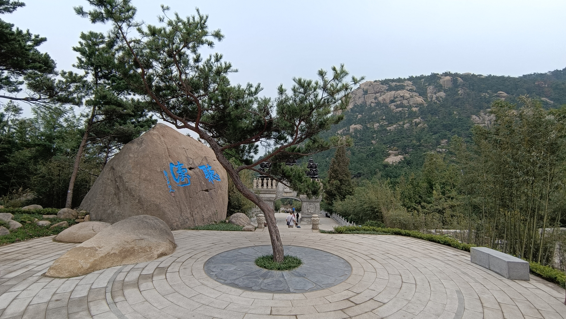法显塑像面朝大海,背拥群山;九朵莲花造型铺设广场上;迎客松、连理树、蟾宫折桂、金榜题名,还有佛教名窟——那罗延窟……崂山风景区藏着一个宝藏级游览区,那就是华严游览区。
