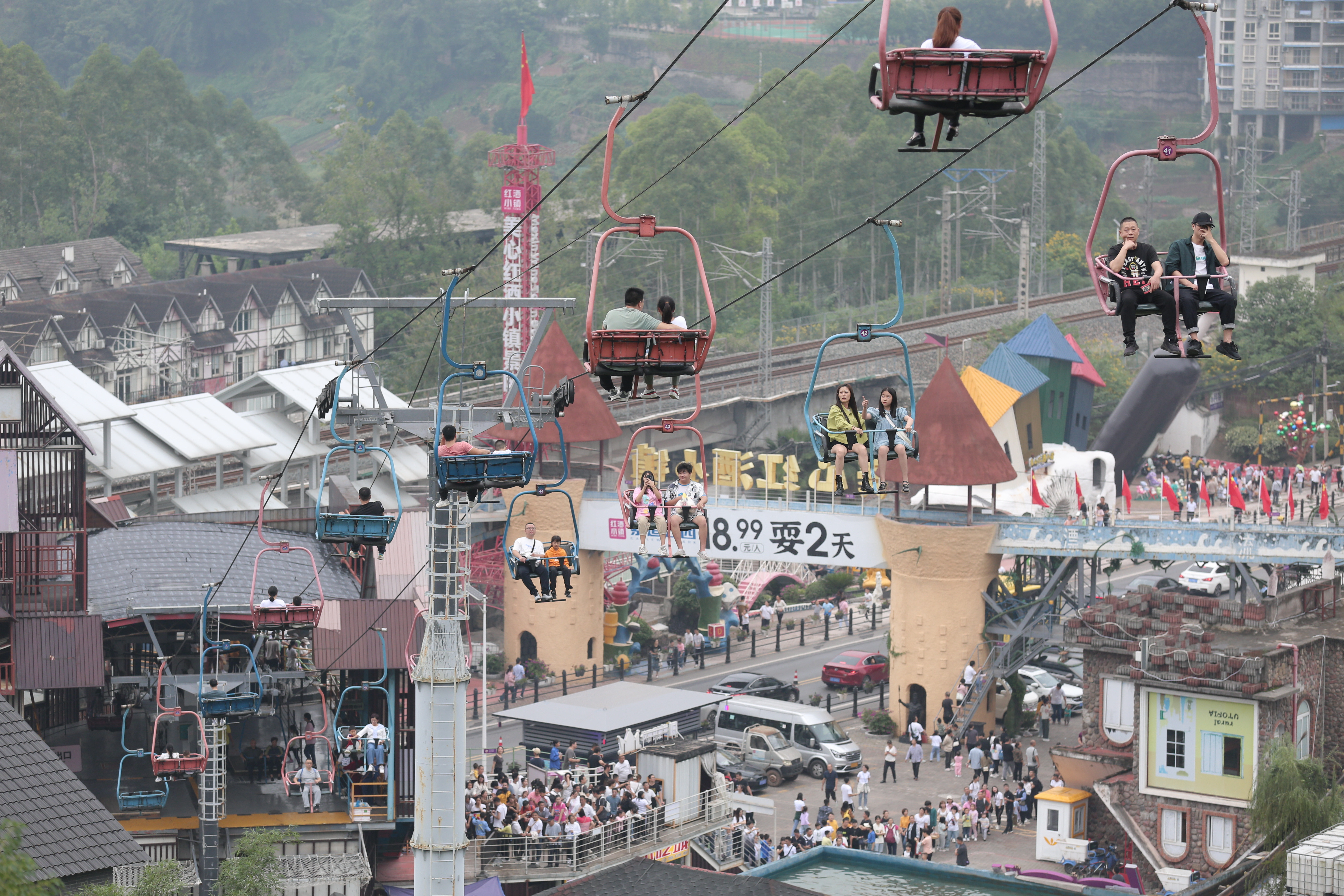 立体交通,魅力山城。高低错落的地形,造就了重庆独特的交通体系。而有一种独特“空中Citywalk”叫美心红酒小镇的索道环线,拥有多样化的索道款式,多元化的旅游场景,仅需18.99元的价格就可以耍两天,6条索道形成环线,串起了一个又一个的旅游场景,成为许多游客欢度节日的理想之选。10月6日,界面重庆从涪陵美心红酒小镇获悉,该景区8天“超级黄金周”接待游客约55万人次,再创历史新高,成为近郊游的热门旅游目的地。