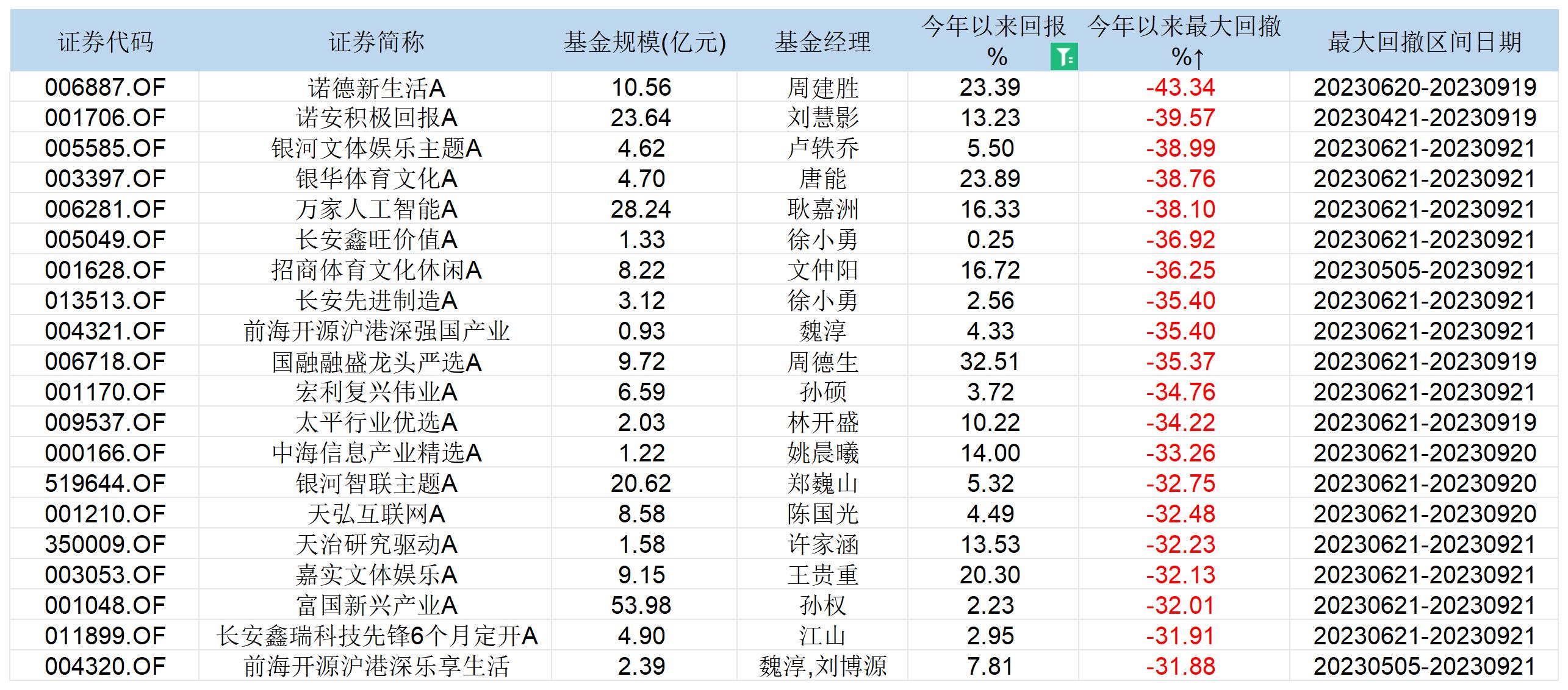 诺安积极回报在年内的回撤幅度也到了39.57%。9月28日,原基金经理蔡嵩松卸任,交棒给刘慧影管理。
