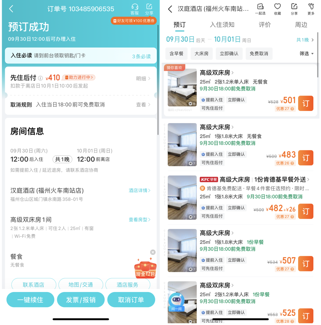十一计划去福建旅游的夏景与也向猎云网表示,自己9月14日提前预定的一间福州汉庭酒店的双床房价格就已经飙到410元,并且价格仍在上涨,目前已经涨至501元。