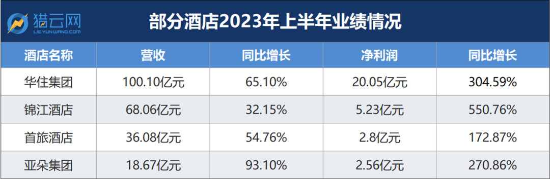根据半年报显示,今年上半年,锦江酒店、华住集团、首旅酒店及亚朵集团的营收和净利润都迎来了大幅增长。
