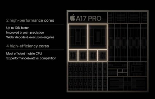 新开发的A17 Pro芯片,也是业内首款3nm级别芯片,集成190亿晶体管,CPU运行速率提升10%。不过,经数码博主测试,A17 Pro在提升性能的同时,功耗也随之水涨船高,同频能耗比方面,相比A16芯片并没有很大的进步。