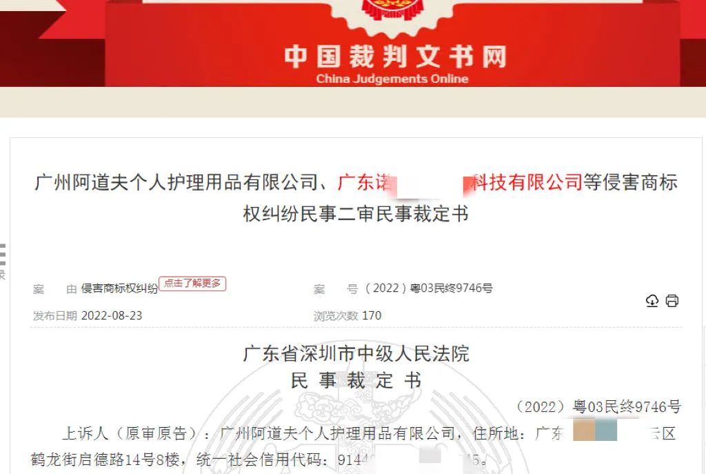 近日,原告广州阿道夫个人护理用品有限公司与被告深圳市新**精细化工有限公司、广东诺**生物科技有限公司的商标侵权及不正当竞争案件二审结果公布,法院判定被告赔付2891593.5元。