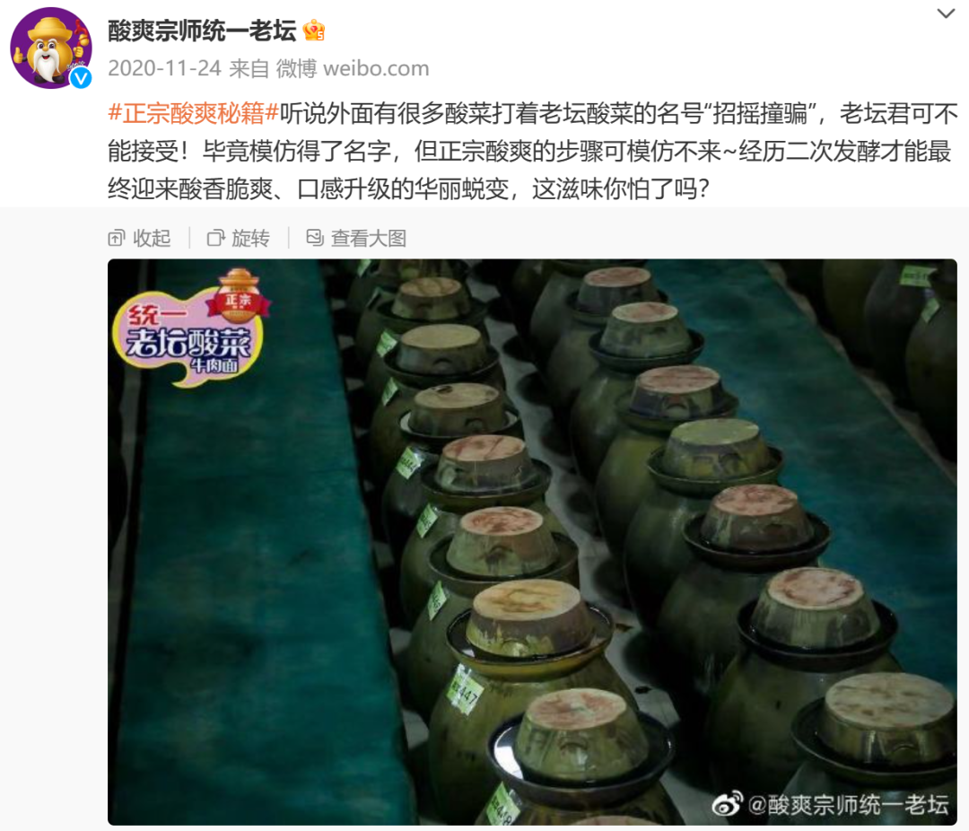 营销上的战火也很猛,统一请汪涵拍了支广告内涵,“有人模仿我的脸,有人模仿我的面。模仿再像也不是统一老坛。”