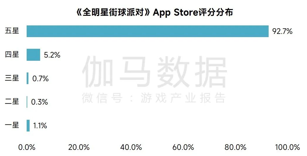 《全明星街球派对》5星评分率达92.7%