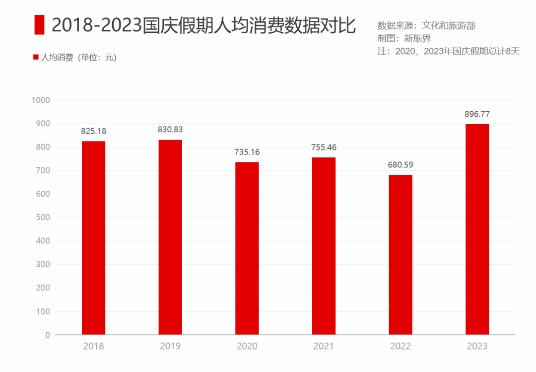 虽然“消费降级”相关的讨论增多,但这个假期从数据上看,人均消费也创下历史新高。据文旅部数据测算,2023年十一假期人均消费达896.77元,高于2019年的人均消费830.83元;平均每天有超过1亿人的出游,每天创造了超过1000亿元的旅游消费。