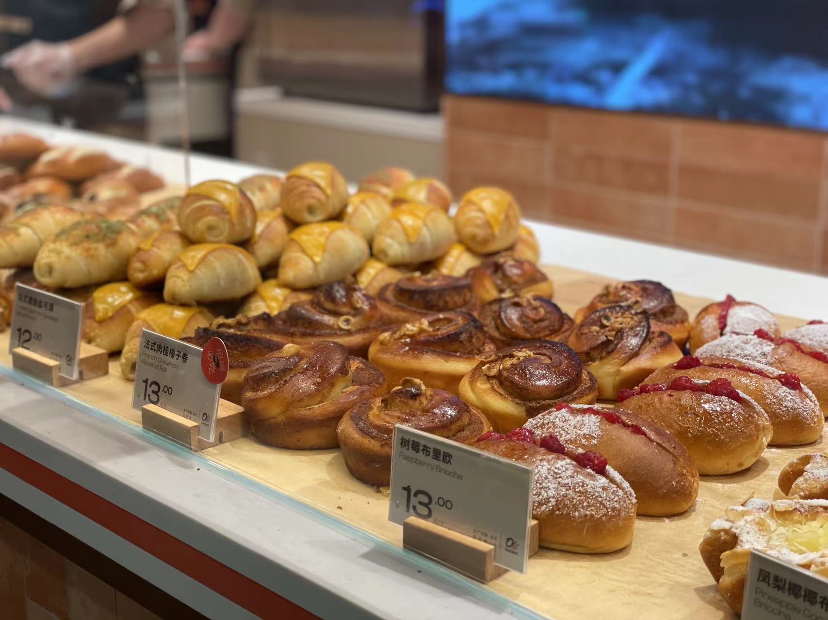 华润集团旗下定位高端的精品超市Olé,日前在深圳福田印力中心开出了首家烘焙专门店Olé Bakery。界面新闻在现场看到,该烘培店大概有34款面包,与Olé超市中的烘焙产品相比,Olé Bakery中几乎没有同款产品。新开的独立烘培店中,还推出了包括冰淇淋酥脆牛角这类大量限定新品,以进行区分,吸引客流。