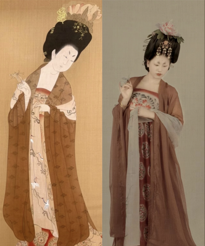 “去年,清一色的都是网红妆的流水线公主,现在我们主打复原妆,要求从汉服到妆造必须还原当时朝代的审美,现在唐代簪花仕女图是爆款妆容。”不夜城一家做复原汉服馆的老板告诉剁椒。