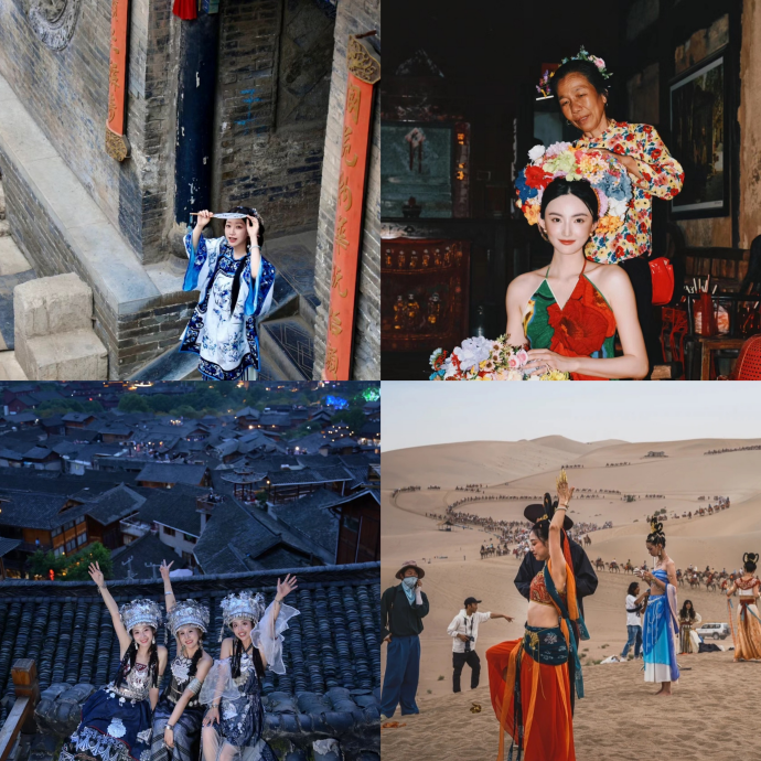 由于民俗服饰约拍热,国庆的流量和热度又光临了贵州、太原、敦煌、泉州等新晋热门旅游城市。