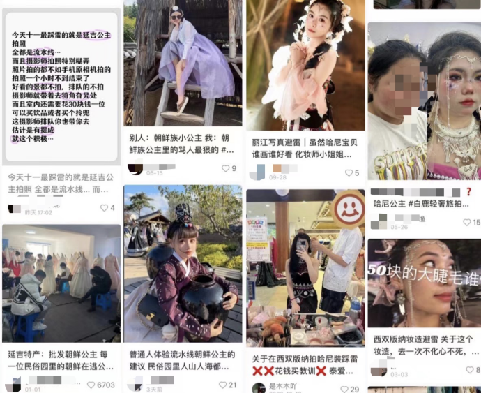 但不容忽视的是,民俗服饰约拍自带天然流量,但刚迎来爆红,社交平台时不时的踩雷贴就已到达。