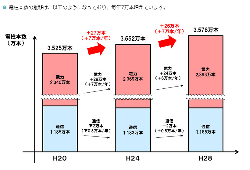 就在各国都在研究将电线杆拔除,将电缆埋入地下的时候,日本却还在每年新增7万根电线杆。