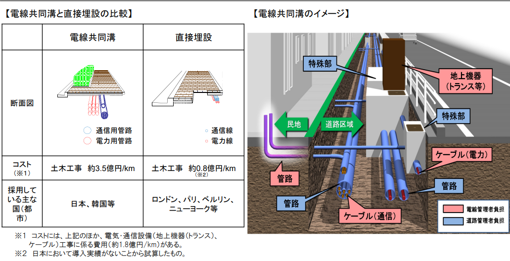 一种是日本韩国都在用的电线共同沟,另一种则是伦敦、巴黎、纽约都在使用的直接铺设。
