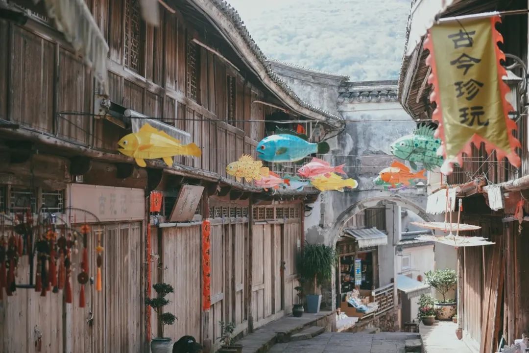 渔港古城保留着长约1670米的四条老街,后街、福建街、中街、碗行街,木结构的老房子沿着拾级而上的山道整齐排列着。若想感知古城的深度,就要走走这百年老街。