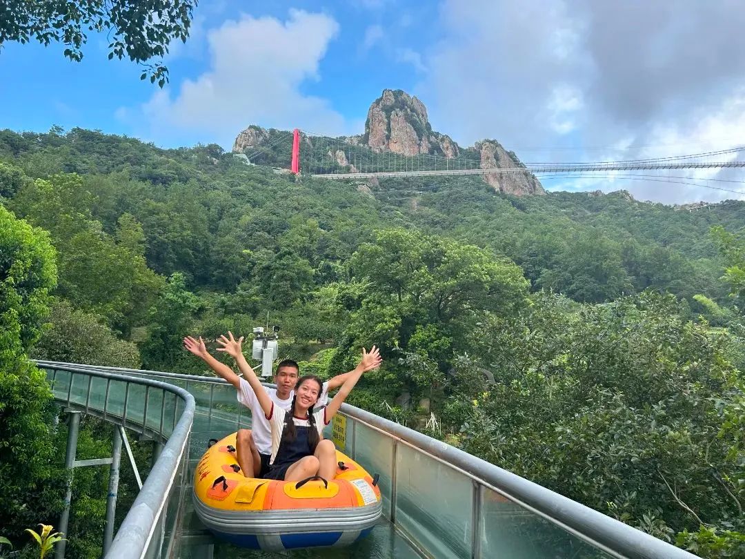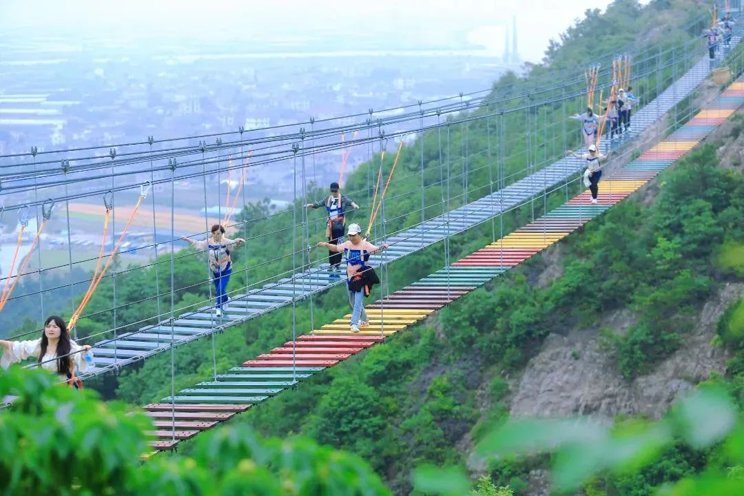 灵岩火山峰景区现有项目主要有七彩云梯、峰火漂流、高空秋千、玻璃吊桥等,项目体验惊喜连连。在惊险刺激的高空,每走一步都是不一样的风景,绝对是拍照的网红打卡地!