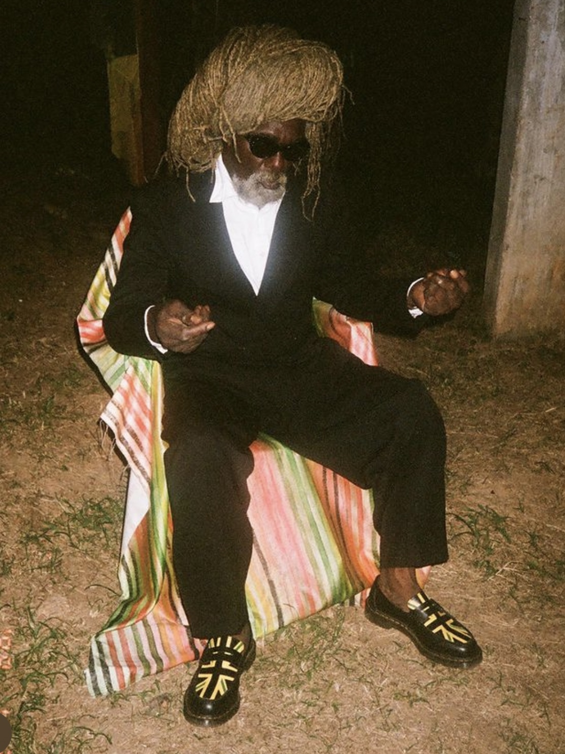 鞋面图案融合了英国和牙买加国旗的元素,这一设计致敬了牙买加出生、驻扎英国的艺术家Dennis Wilson。
