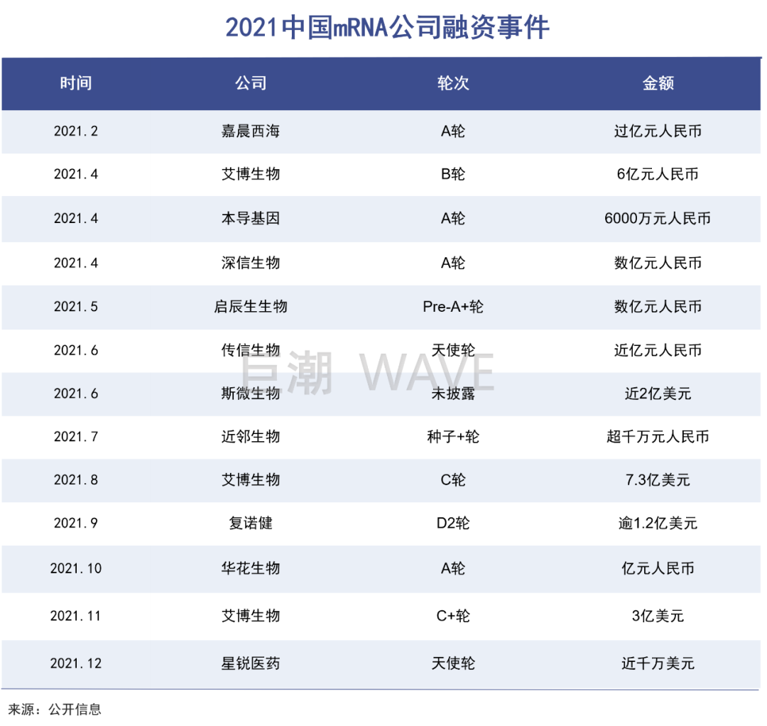短短一年多的时间内,启动mRNA技术研发的企业将近20家。仅2021年一年,mRNA相关融资事件多达十几项。