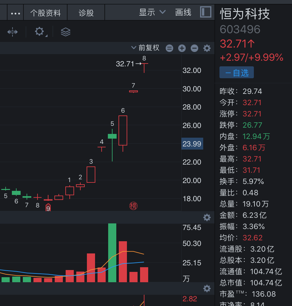 6天5个涨停板,恒为科技(603496.SH)表现惊艳。