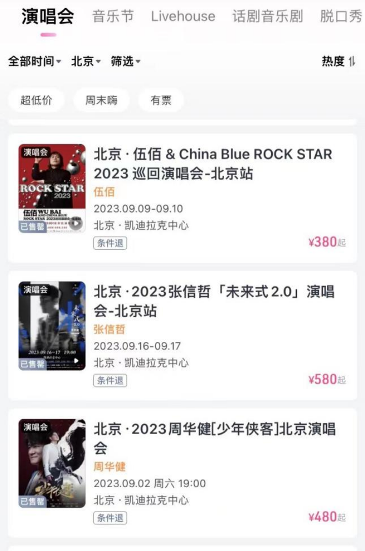北京部分演唱会价格(图源:大麦网)