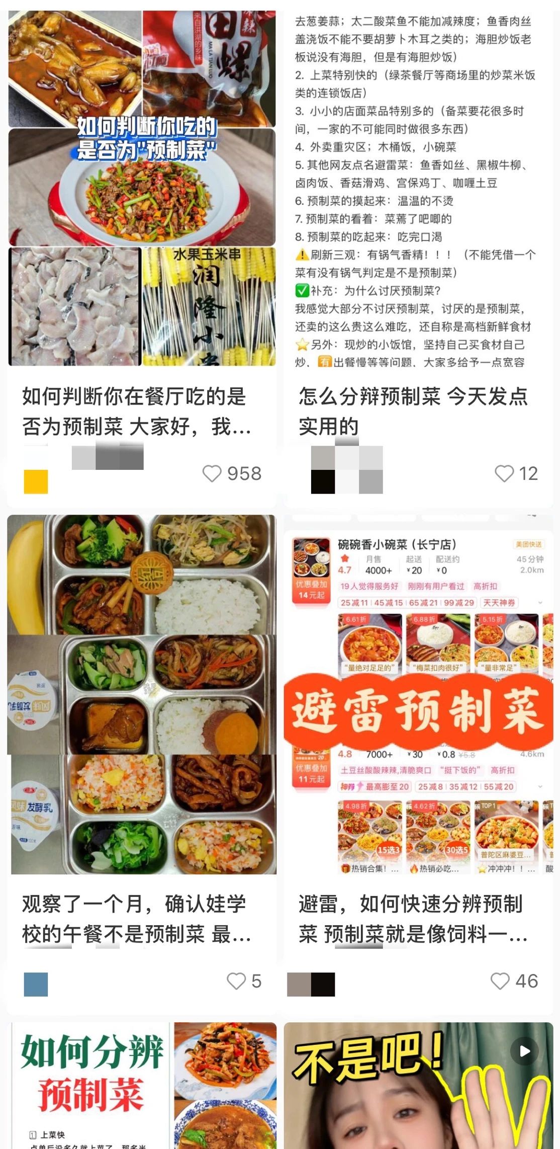 社交平台上,人们化身侦探,从锅气、色泽到口感,寻找预制菜露出的马脚,总结成一篇篇预制菜辨别指南;现实生活里,人们调查那些看似现做,实则也是预制菜的商家;还有人下定决心,“以后都自己做”,并开始反思现炒食物对他们的意义。