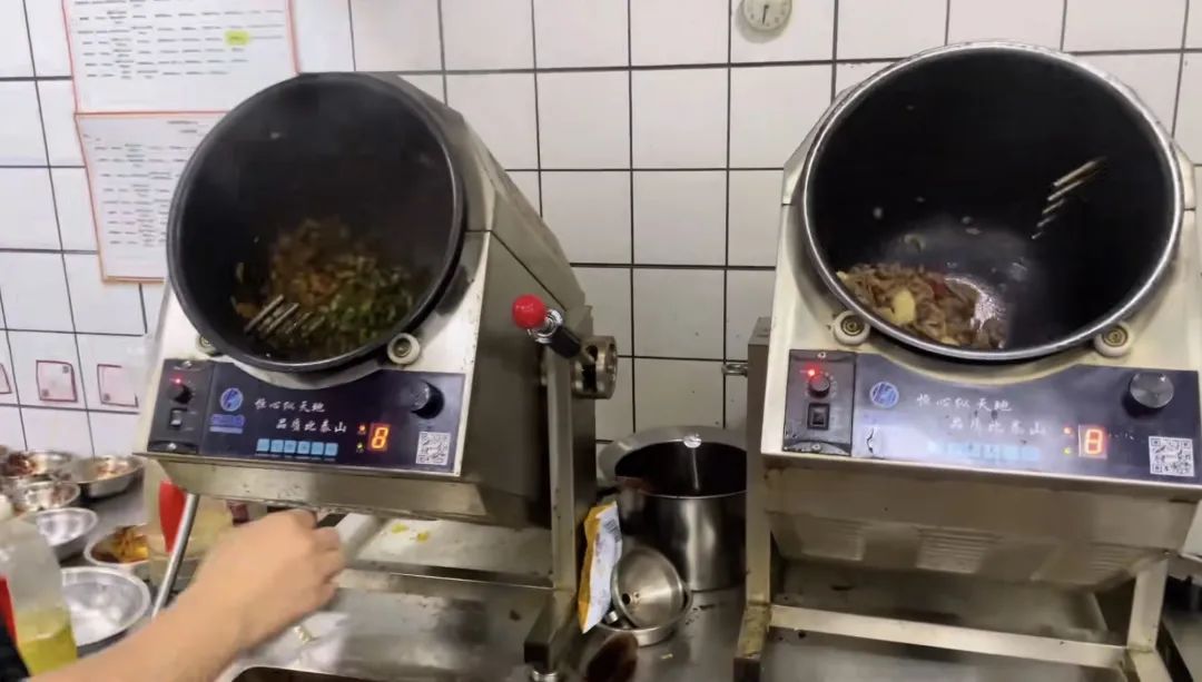 也有一些比如小聪这样的餐饮商家选择“逆流而上”,代价就是付出更多。他发现,即便是用上了炒菜机,每天工作量依然很大,比如,早上七点到店,就要开始做洗菜、切菜、煮饭、清理台面……正式营业来单时,要一边在炒菜机里添菜,一边准备米饭打包。