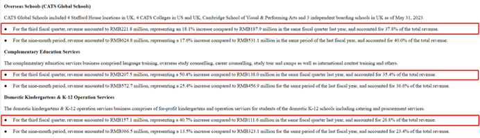 截至2023年5月31日的第三财季,博实乐营收5.86亿元,同比增长34%。其中,海外学校收入贡献2.22亿元,成为第一大收入来源。
