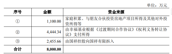 招股书显示,最后筹集的8000万元中仅1100万元来源于家庭积累资金,其余资金均来自第三方。其中4444.34万元来源于华夏幸福,另外2455.66万元由陈根伟控制的国祥控股向此次并购对象国祥有限拆借而来。