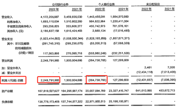 细项来看,花旗中国2022年年报中除去未分配项目外,主要分为公司银行业务和个人银行业务。其中个人银行业务2022年营业收入为14.43亿元,约为公司银行业务的34.59%。除体量更小外,个人银行业务2022年利润为亏损3.85亿元,而2021年为盈利1.27亿元。并且,花旗中国2022年公司银行业务为盈利22.49亿元。