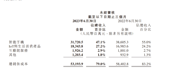 高市场份额的背后,实则是小米以价换量的结果。据小米财报显示,2022年,小米智能电视及笔记本电脑的收入同比下降13.3%至274亿元。进入到2023年,这种趋势仍在延续。据小米今年二季度财报显示,智能电视及笔记本电脑收入由去年同期的53亿元减少至47亿元,下降10.1%。小米对此解释道,这是因为境外市场的智能电视及笔记本电脑收入下降,部分被中国大陆市场智能电视出货量的增加所抵消。