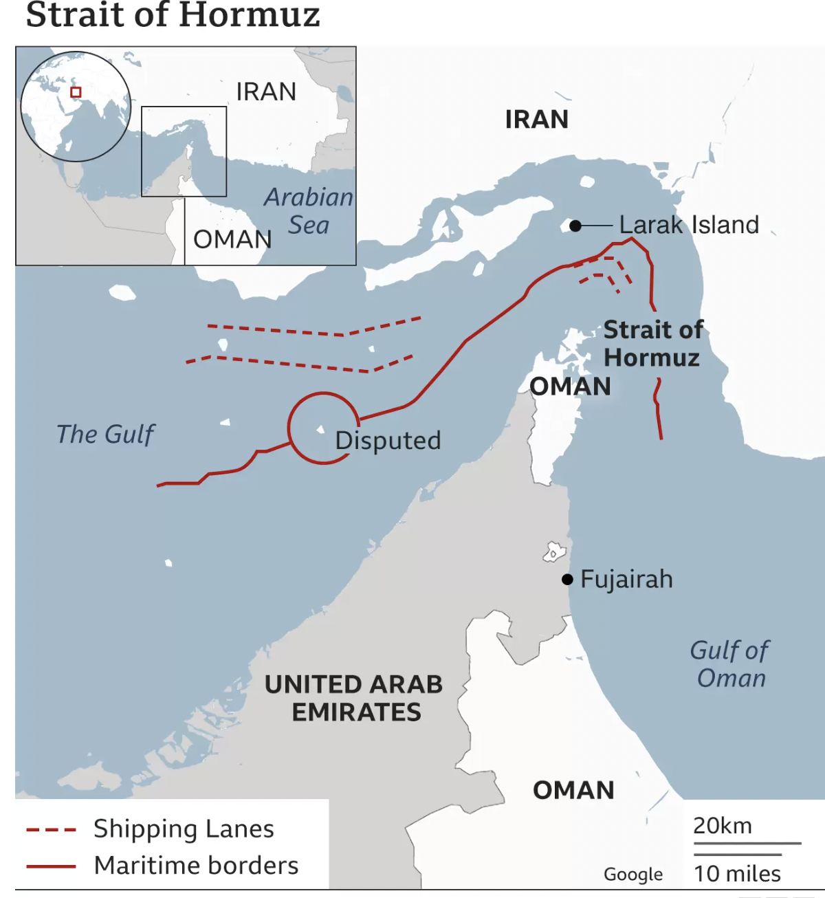 霍尔木兹海峡是伊朗南部边境附近的一条狭窄水道,全球37%的海运石油都要经过这里。伊朗政府此前已多次威胁关闭该海峡。任何针对德黑兰的报复行动都可能危及霍尔木兹海峡的船只通行。