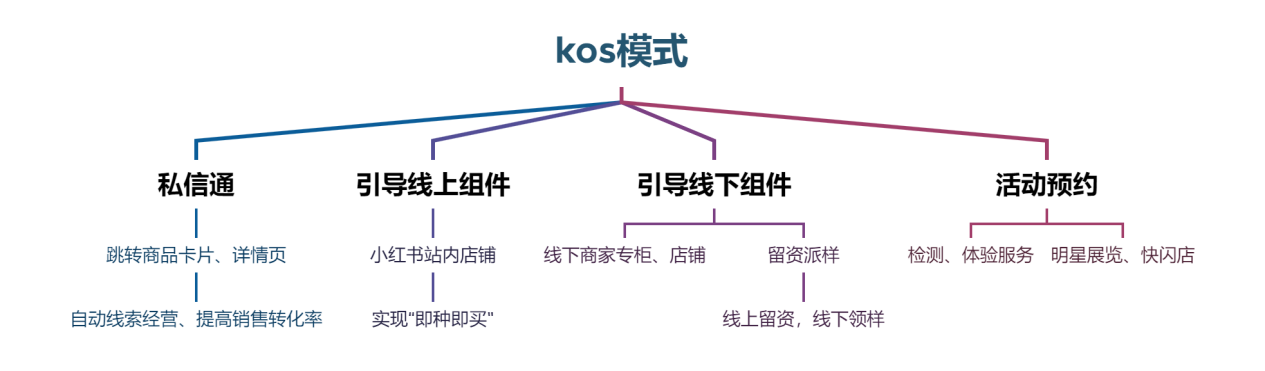 KOS模式目前主要包含四个核心功能组件:私信通、引导线上组件、引导线下组件、活动预约。