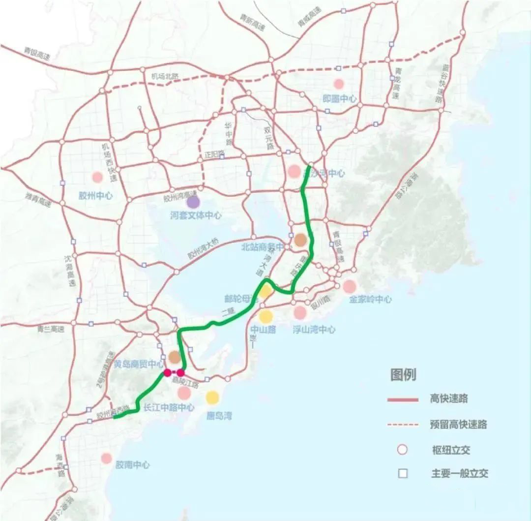 嘉陵江路-胶州湾路快速路(一隧至海西路)的规划建设也将进一步实现与青岛东西快速路的无缝衔接,强化西海岸新区和青岛主城区的联系,拓展城市发展空间。