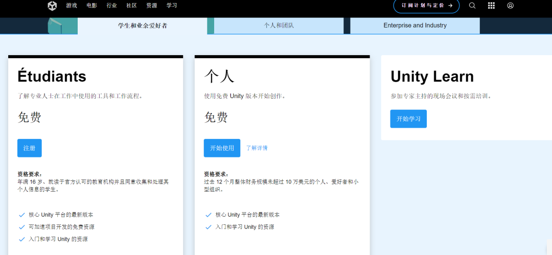 此前,Unity的定价非常简单:为业余爱好者、学生和开发人员提供免费的个人套餐,而Pro版和企业版价格为一年400美元、1800美元。