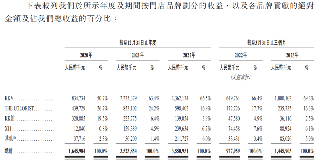 具体到美业端,据KK集团招股书显示,THE COLORIST 调色师在2020-2022年的收入分别为4.40亿元、8.53亿元、5.98亿元。而在2023年Q1THE COLORIST 调色师收益同比增长36.5%至2.36亿元,但营收占比仍然仅16.3%。