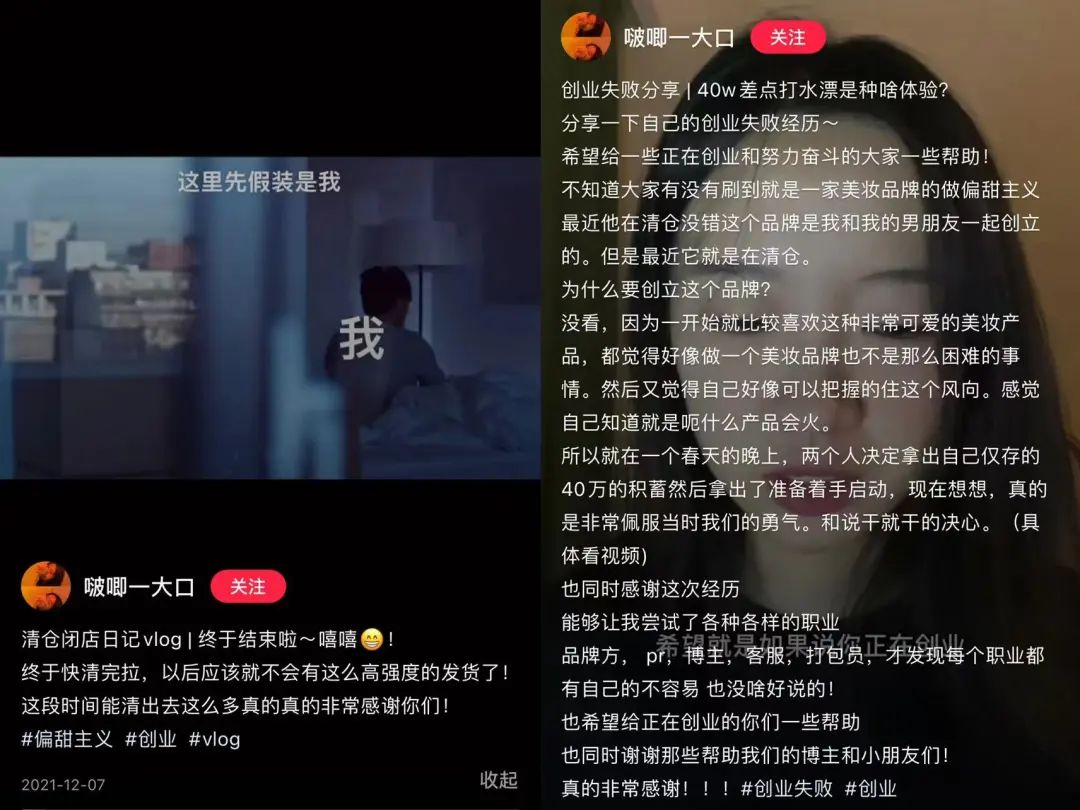 其创始人在小红书账号@啵唧一大口上曾发布一则视频,总结创业失败原因。