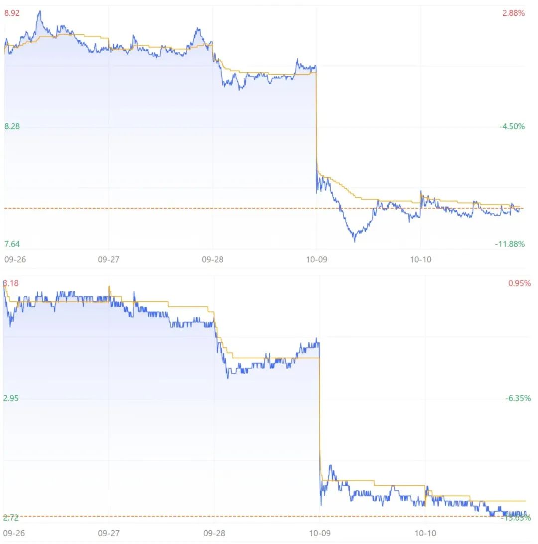 (图源:百度股市通,上为光线传媒5日均线,下为华谊兄弟5日均线)