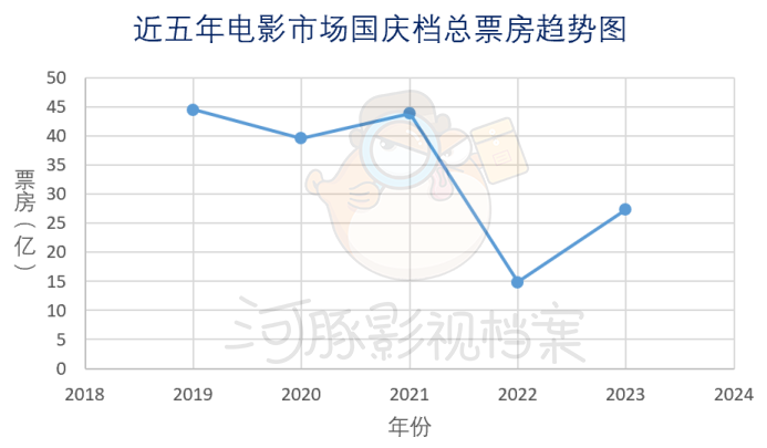 昨日,股市影视板块大跌,国庆长假后首日开盘表现不佳。影视股下滑的原因在于国庆档电影票房不及预期,数据机构预测的票房持续缩水,根据猫眼专业版数据,整个国庆档电影总票房27.34亿,同比增长83%,但远比不上2019-2021年40亿左右的成绩。