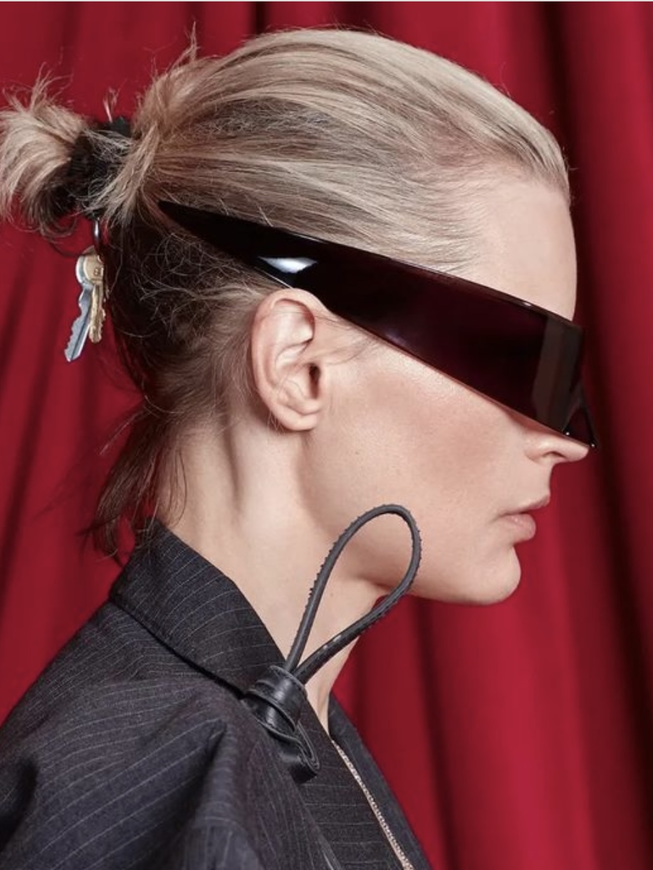近日,Kim Kardashian在巴黎时装周中佩戴一副未发行的2024夏季系列BALENCIAGA “5G”太阳镜,该新品即将上架开售。