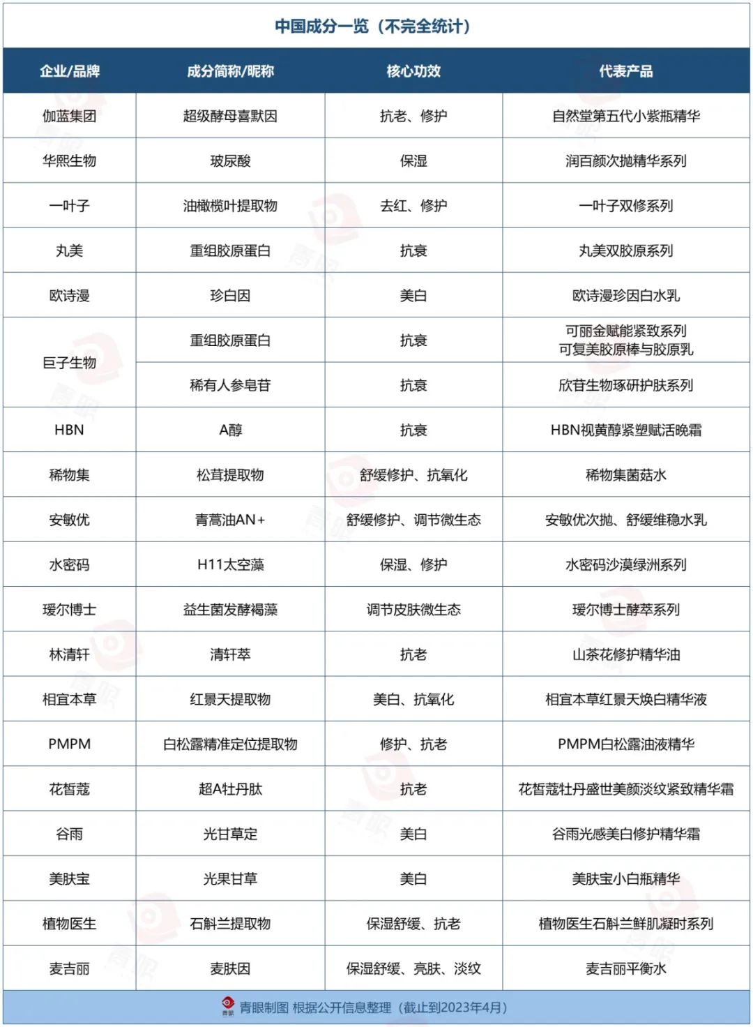 青眼此前就梳理出20多个拥有“中国成分”的品牌/企业,其中不乏国内上市十强美妆企业,新锐品牌也将中国成分当成与传统品牌、国际品牌错位竞争的一张王牌。