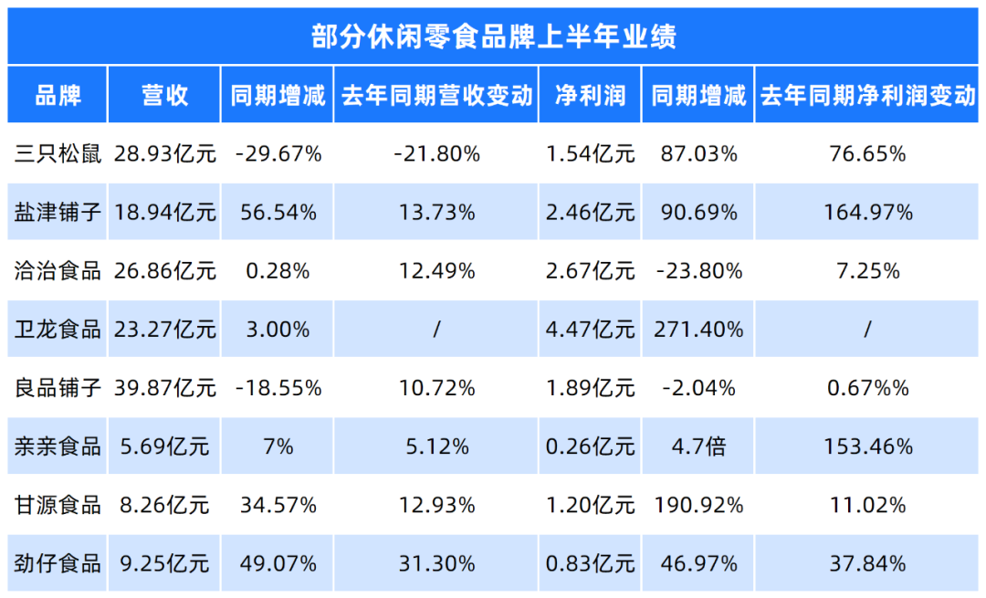 在仍具不确定性的环境中,那些高速增长的企业究竟做对了什么?亿邦动力盘点了盐津铺子、亲亲食品、劲仔食品、良品铺子等8个休闲零食品牌的上半年财报,来寻找他们隐藏在其中的增长点。