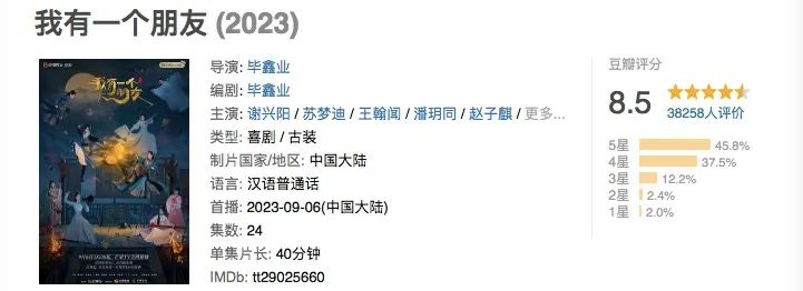 9月,《我有一个朋友》在芒果TV上线,截至目前,其豆瓣评分稳定在8.5分左右。与《鹊刀门传奇》一样,同为古装武侠喜剧,同样有“情怀滤镜”,不过《我有一个朋友》的“情怀”来自于0713男团在剧中做群演以及导演毕鑫业鲜明的个人风格。