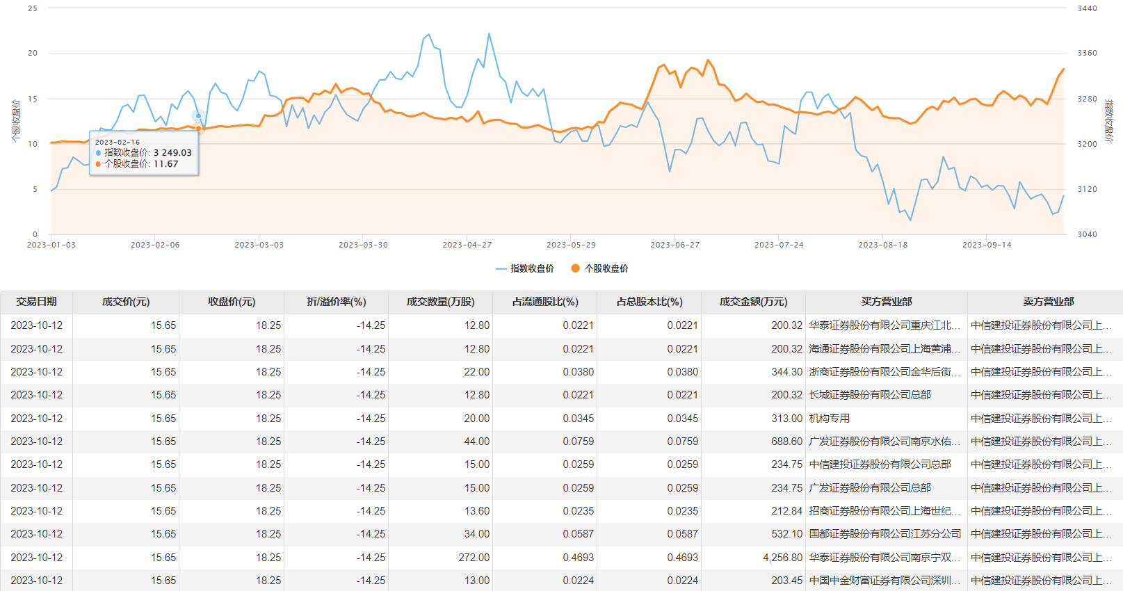 润达医疗10月12日大宗交易成交487万股,成交额7621.55万元,占当日总成交额的3.02%,成交价15.65元,较市场收盘价折价14.25%。