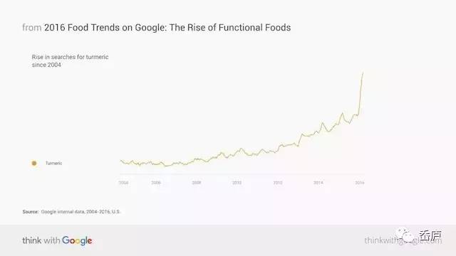 「姜黄」一直以来都有「香料界的巨星」称,印度咖哩更是以此为基底,但姜黄类饮料卻是在最近几年被开发。《2016食物潮流报告》称,「姜黄」在过去5年里的搜索量增长300%,从澳洲悉尼、英国伦敦、再到美国旧金山,不少咖啡馆都开始出售含有「姜黄」的饮品。