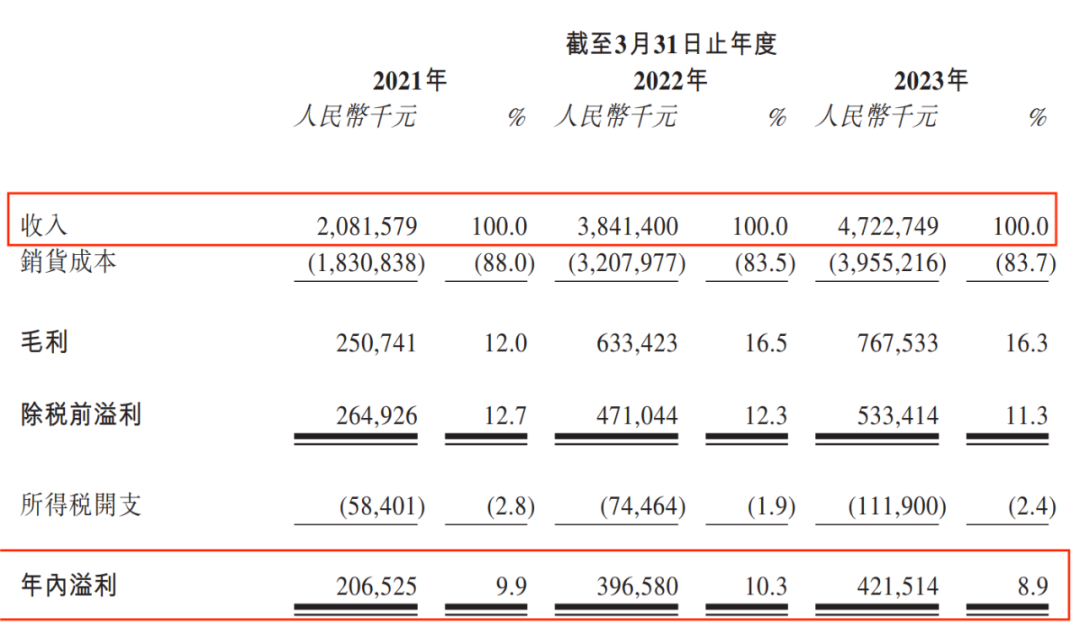 而在此之前,米高集团的收入和利润一直是走高趋势。2021财年-2023财年,其收入分别为20.82亿元、38.41亿元、47.23亿元;溢利分别为2.07亿元、3.97亿元、4.22亿元。