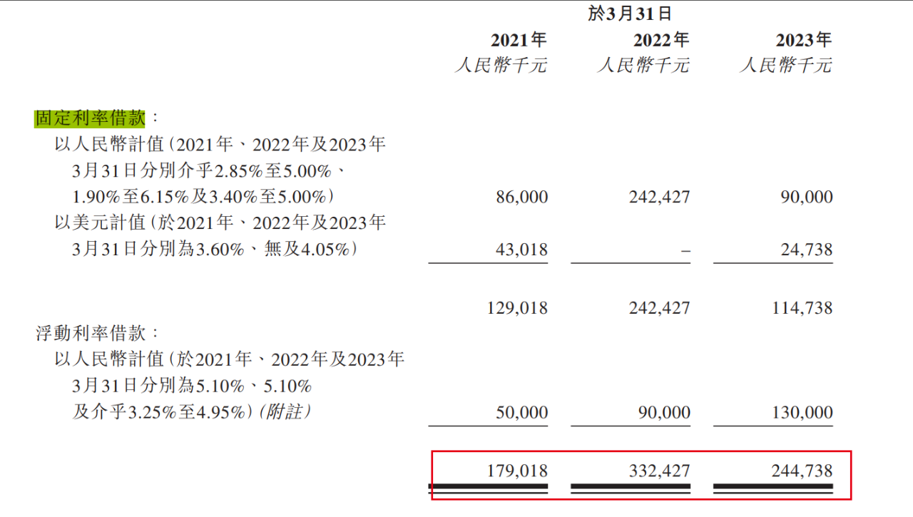 奇怪的是,向合营公司提供贷款的同时,米高集团还从银行借款。2021财年-2023财年,米高集团的银行借款分别为1.79亿元、3.32亿元、2.45亿元。