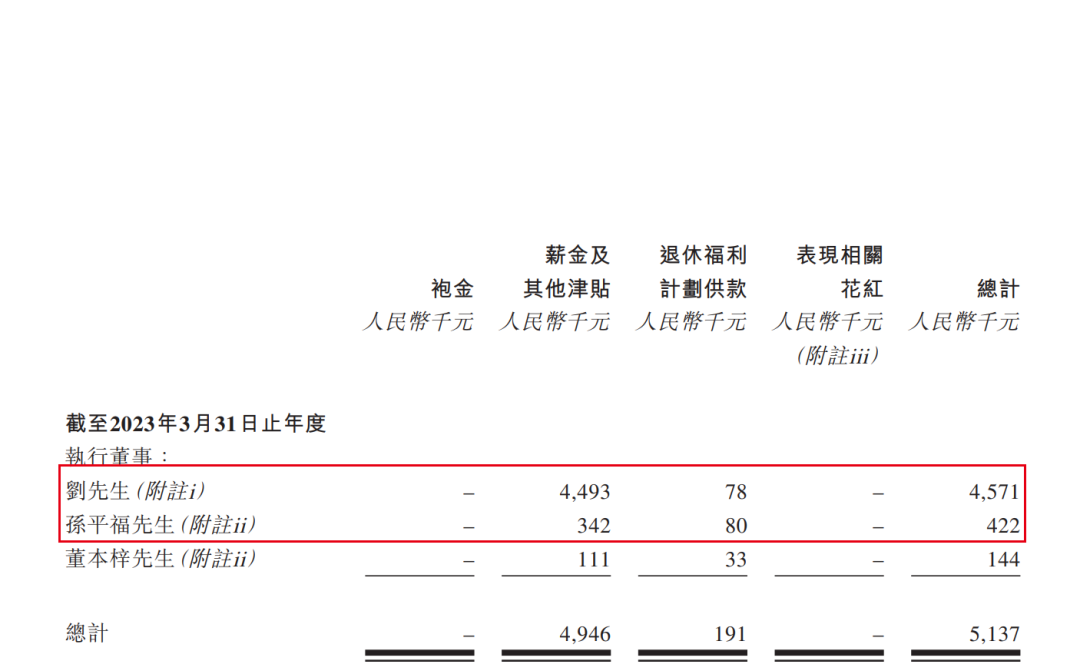 刘国才的薪酬在公司也是“遥遥领先”。2021财年-2023财年,刘国才薪酬合计227万元、446.8万元、457.1万元。