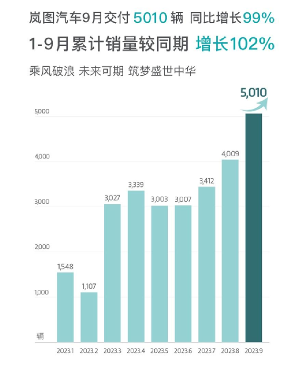在国庆假期前后,各个车企纷纷公布了9月的销量情况。相比破万已是家常便饭的头部品牌,岚图的销量规模并不大,只有5010辆,但这是岚图迄今最好的成绩。