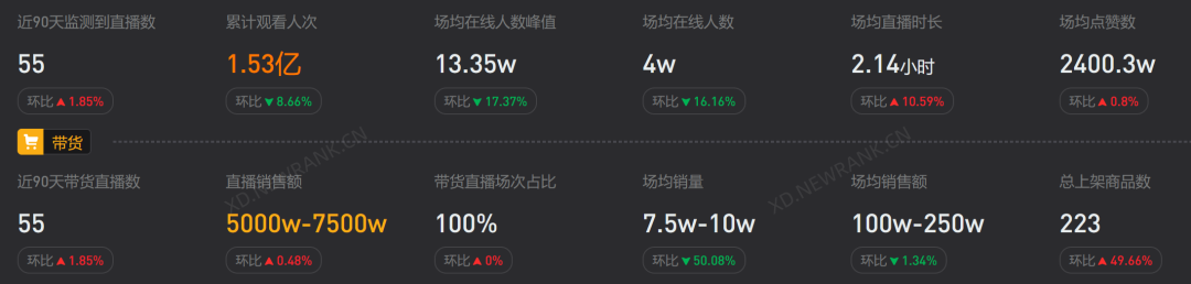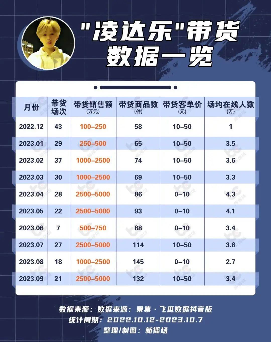 凌达乐的钱越赚越多。据新播场数据统计,2022年12月到2023年9月,凌达乐10个月的GMV区间总和约在1.38-2.9亿元之间。