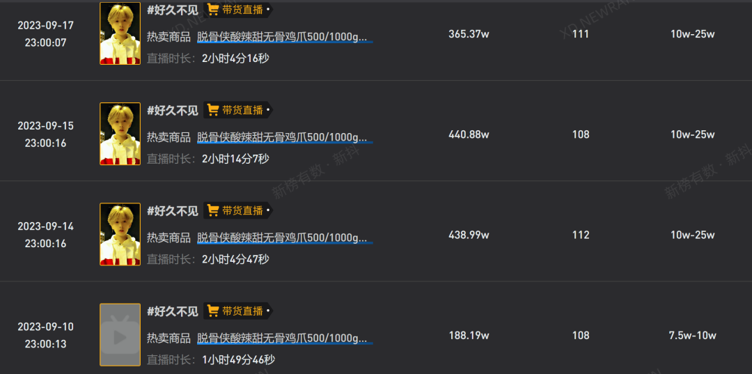 但凌达乐知道,不拼是没钱赚的。熟谙互联网法则的凌达乐特意避开直播的黄金时间,在晚上十一点开播,选品也都是客单价在10-50元左右的小零食,这也是消费者决策成本最低的品类。
